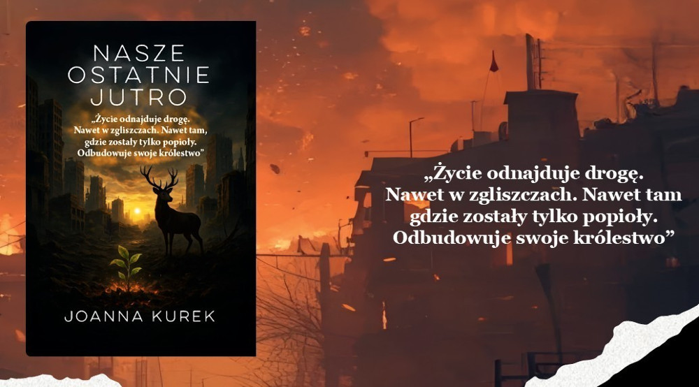Mamy przyjemność zaprezentować Państwu nową książkę p. Joanny Kurek „Nasze ostatnie jutro”. To poruszająca historia dwojga młodych ludzi przemierzających okrutny post apokaliptyczny świat.